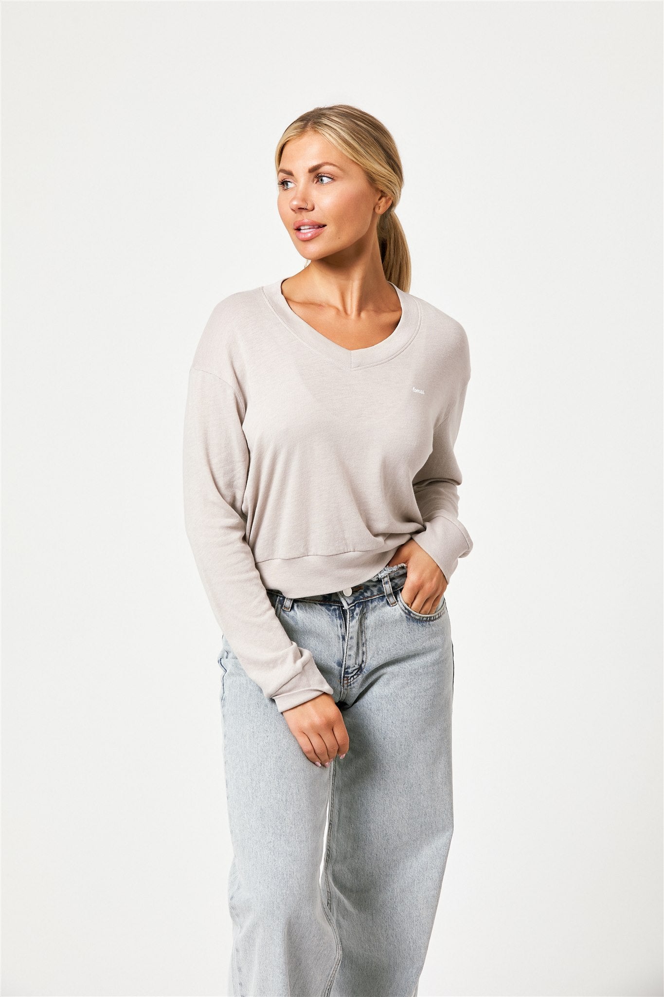 - Mid V-neck ribbed collar